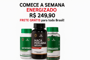 O Combo Energia e Vitalidade reúne Moringa, Maca Peruana Negra e Ashwagandha em uma fórmula 100% natural. Mais disposição, equilíbrio físico e mental, com frete grátis para todo o Brasil.