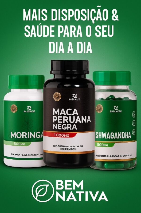 Consulte frete e Compre aquiO Kit Energia e Vitalidade com Moringa, Maca Peruana Negra e Ashwagandha é ideal para quem deseja mais disposição, equilíbrio e bem-estar diário.